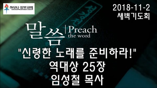 2018-11-2, "신령한 노래를 준비하라!", 역대상 25장, 새벽기도회, 하모나장로교회, 임성철 목사