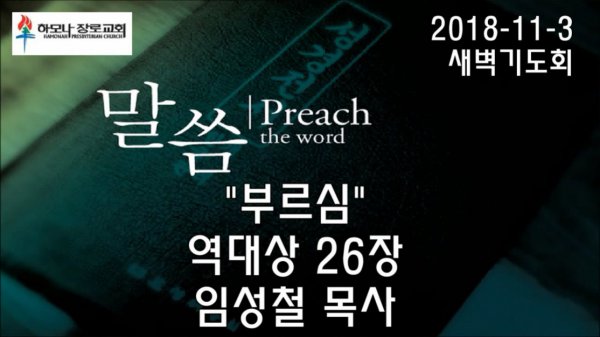 2018-11-3, "부르심", 역대상 26장, 새벽기도회, 하모나장로교회, 임성철 목사