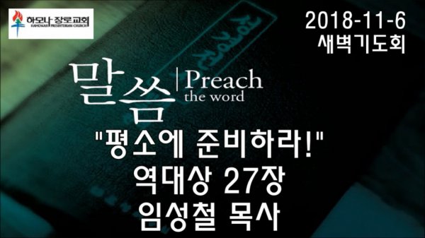 2018-11-6, "평소에 준비하라!", 역대상 27장, 새벽기도회, 하모나장로교회, 임성철 목사