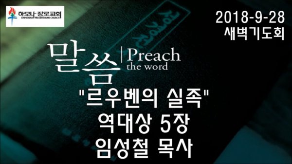2018-9-28, "르우벤의 실족", 역대상 5장, 새벽기도회, 하모나장로교회, 임성철 목사