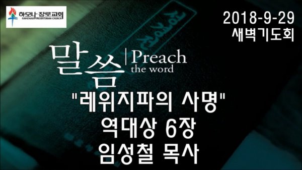 2018-9-29, "레위지파의 사명", 역대상 6장, 새벽기도회, 하모나장로교회, 임성철 목사