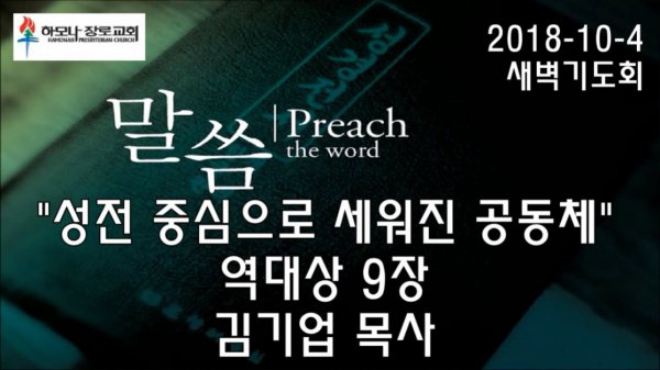 2018-10-4, "성전 중심으로 세워진 공동체", 역대상 9장, 새벽기도회, 하모나장로교회, 김기업 목사