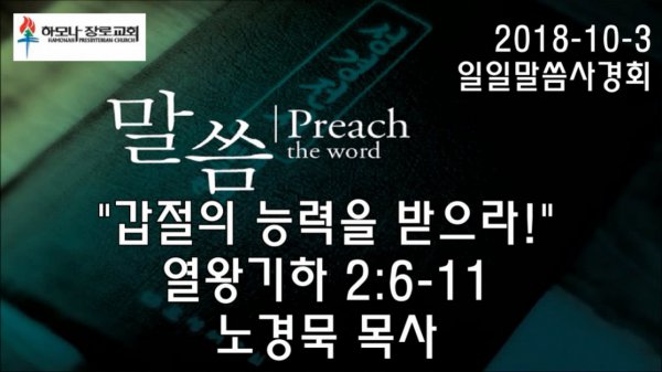 2018-10-3, "갑절의 능력을 받으라!", 왕하2:6-11, 일일말씀사경회, 하모나장로교회, 노경묵 목사