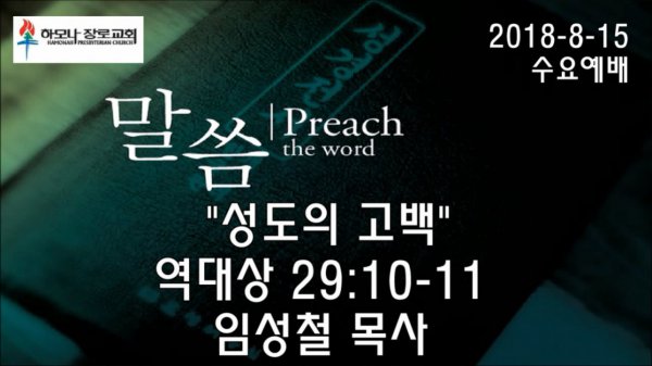 2018-8-15, "성도의 고백", 대상29:10-11, 수요예배, 하모나장로교회, 임성철 목사