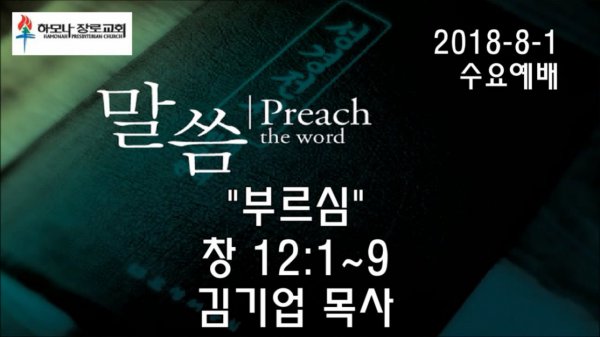 2018-8-1, "부르심", 창 12:1~9, 수요예배, 하모나장로교회, 김기업 목사