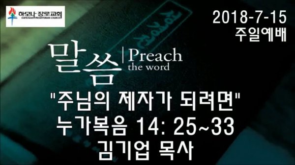 2018-7-15, "주님의 제자가 되려면", 누가복음 14: 25~33, 주일예배, 하모나장로교회, 김기업 목사