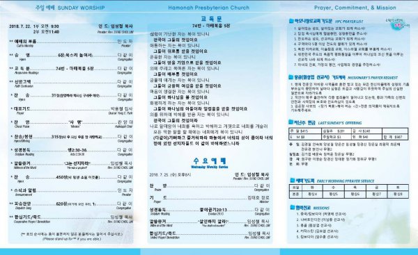 날짜: 2018.07.29 글쓴이 : 관리자 | 부교역자 (주일)