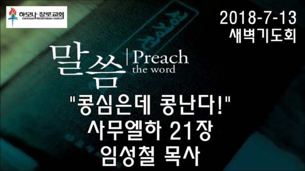 2018-7-13, "콩심은데 콩난다!", 사무엘하 21장, 새벽기도회, 하모나장로교회, 임성철 목사