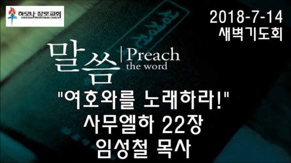 2018-7-14, "여호와를 노래하라!", 사무엘하 22장, 새벽기도회, 하모나장로교회, 임성철 목사