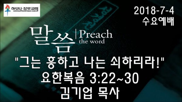 2018-7-4, "그는 흥하고 나는 쇠하리라!", 요한복음 3:22~30, 수요예배, 하모나장로교회, 김기업 목사