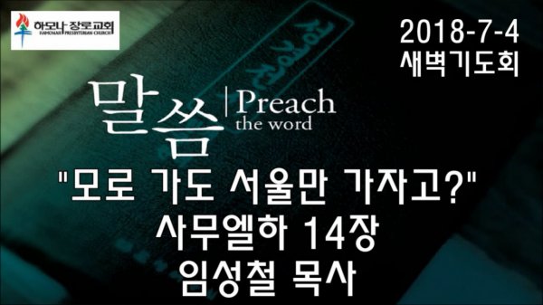2018-7-4, "모로 가도 서울만 가자고?", 사무엘하 14장, 새벽기도회, 하모나장로교회, 임성철 목사