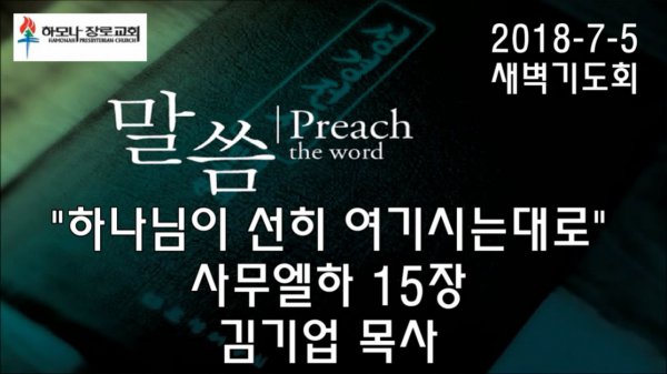 2018-7-5, "하나님이 선히 여기시는대로", 사무엘하 15장, 새벽기도회, 하모나장로교회, 김기업 목사