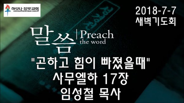 2018-7-7, "곤하고 힘이 빠졌을때", 사무엘하 17장, 새벽기도회, 하모나장로교회, 임성철 목사