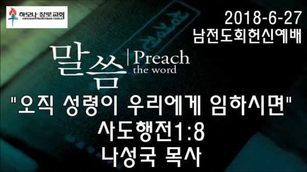 2018-6-27, "오직 성령이 우리에게 임하시면", 사도행전1:8, 남전도회헌신예배, 하모나장로교회, 나성국 목사