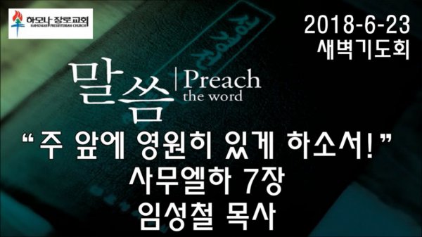 2018-6-23, “주 앞에 영원히 있게 하소서!”, 사무엘하 7장, 새벽기도회, 하모나장로교회, 임성철 목사