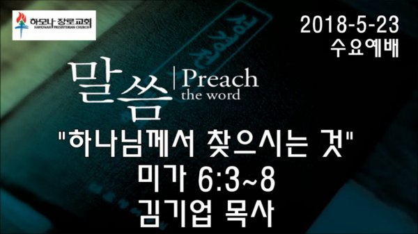 2018-5-23, "하나님께서 찾으시는 것", 미가 6:3~8, 수요예배, 하모나장로교회, 김기업 목사