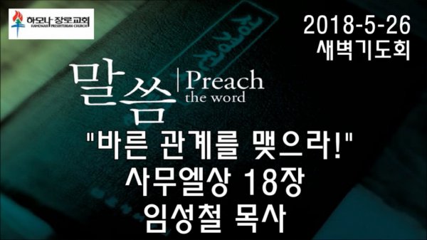 2018-5-26, "바른 관계를 맺으라!", 사무엘상 18장, 새벽기도회, 하모나장로교회, 임성철 목사