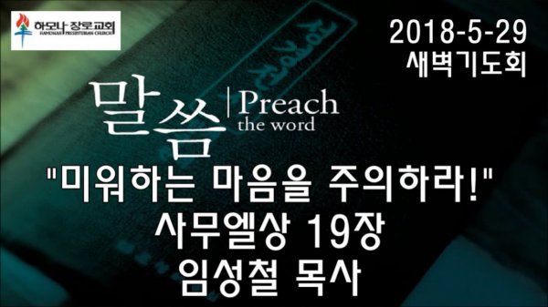 2018-5-29, "미워하는 마음을 주의하라!", 사무엘상 19장, 새벽기도회, 하모나장로교회, 임성철 목사
