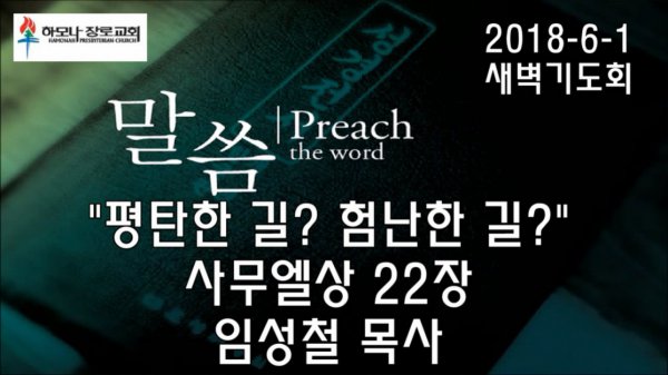 2018-6-1, "평탄한 길? 험난한 길?", 사무엘상 22장, 새벽기도회, 하모나장로교회, 임성철 목사