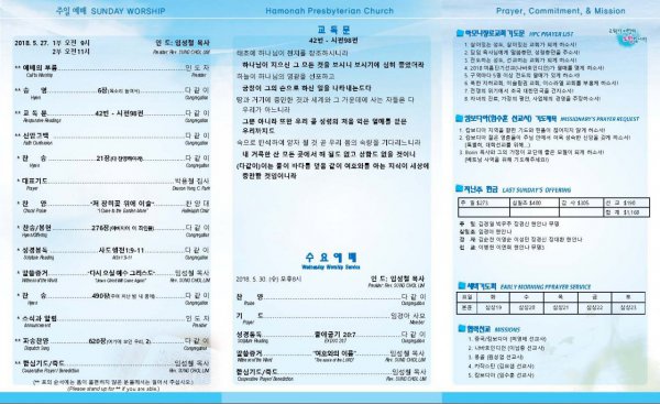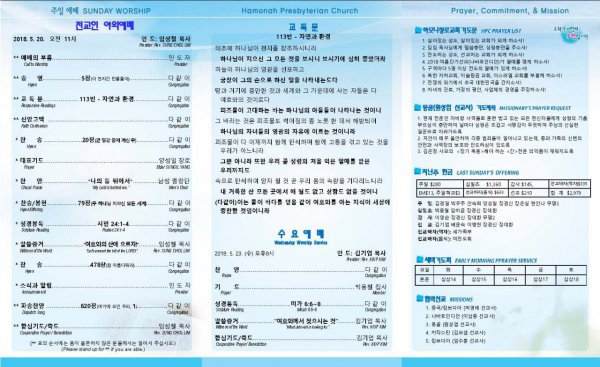 날짜: 2018.05.27 글쓴이 : 관리자 | 주보보기 Bulletins