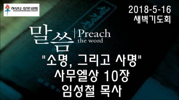 2018-5-16, "소명, 그리고 사명", 사무엘상 10장, 새벽기도회, 하모나장로교회, 임성철 목사