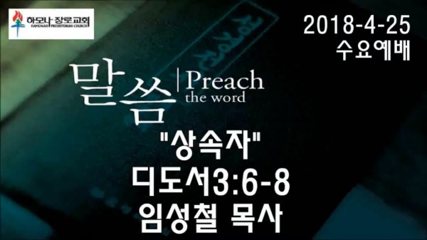 2018-4-25, "상속자", 딛3:6-8, 수요예배, 하모나장로교회, 임성철 목사