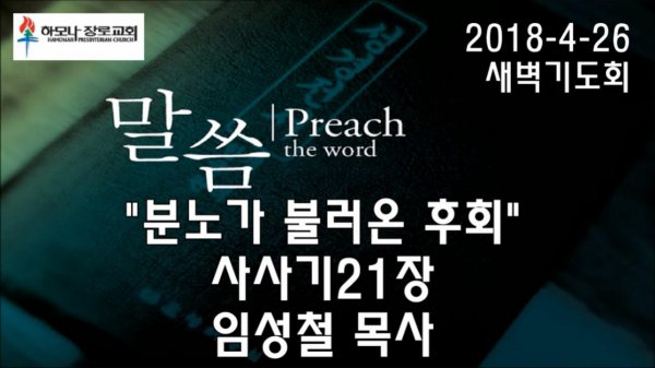 2018-4-26, "분노가 불러온 후회", 사사기21장, 새벽기도회, 하모나장로교회, 임성철 목사