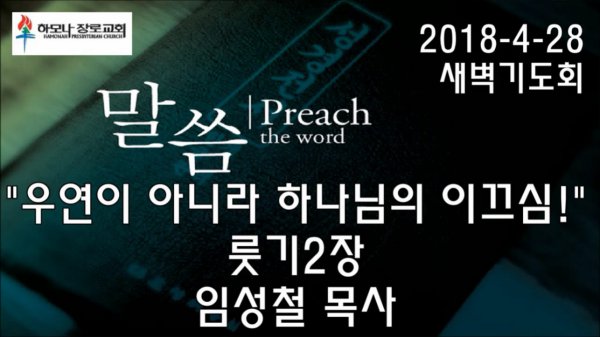 2018-4-28, "우연이 아니라 하나님의 이끄심!", 룻기2장, 새벽기도회, 하모나장로교회, 임성철 목사