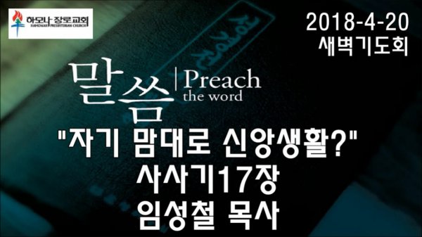 2018-4-20, "자기 맘대로 신앙생활?", 사사기17장, 새벽기도회, 하모나장로교회, 임성철 목사