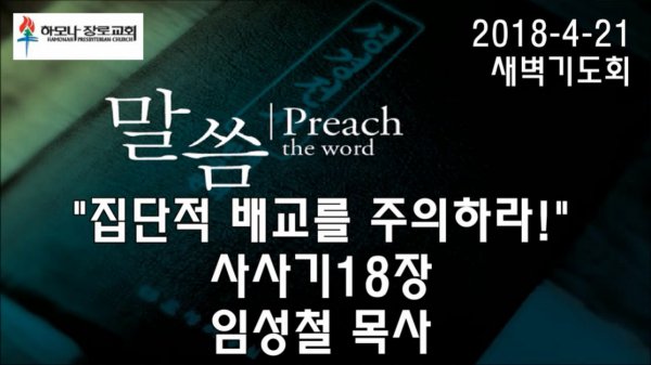 2018-4-21, "집단적 배교를 주의하라!", 사사기18장, 새벽기도회, 하모나장로교회, 임성철 목사