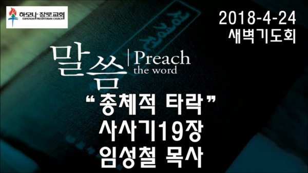 2018-4-24, “총체적 타락”, 사사기19장, 새벽기도회, 하모나장로교회, 임성철 목사