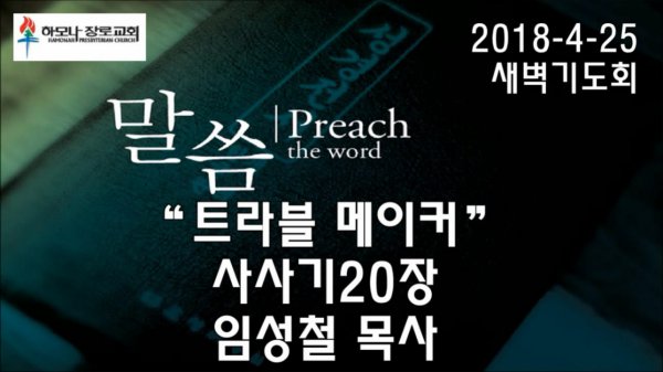 2018-4-25, “트라블 메이커”, 사사기20장, 새벽기도회, 하모나장로교회, 임성철 목사