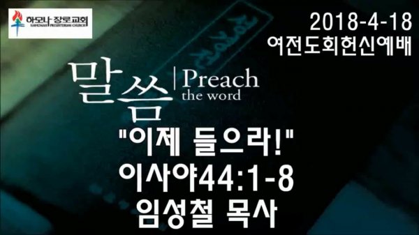 2018-4-18, "이제 들으라!", 이사야44:1-8, 여전도회헌신예배, 하모나장로교회, 임성철 목사