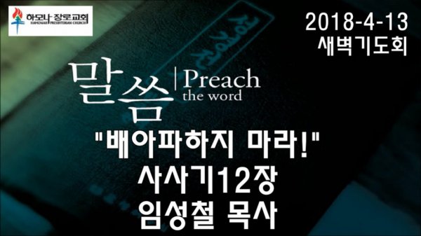 2018-4-13, "배아파하지 마라!", 사사기12장, 새벽기도회, 하모나장로교회, 임성철 목사