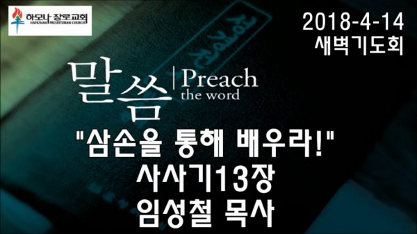 2018-4-14, "삼손을 통해 배우라!", 사사기13장, 새벽기도회, 하모나장로교회, 임성철 목사