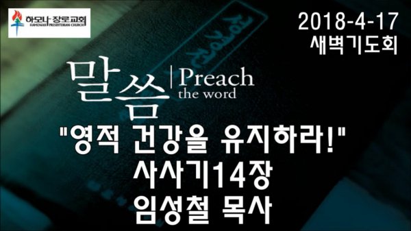 2018-4-17, "영적 건강을 유지하라!", 사사기14장, 새벽기도회, 하모나장로교회, 임성철 목사