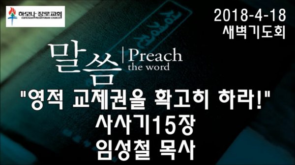 2018-4-18, "영적 교제권을 확고히 하라!", 사사기15장, 새벽기도회, 하모나장로교회, 임성철 목사