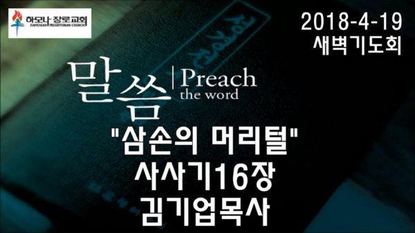 2018-4-19, "삼손의 머리털", 사사기16장, 새벽기도회, 하모나장로교회, 김기업 목사