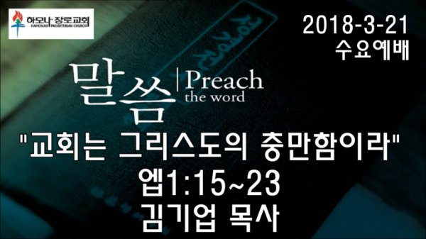 2018-3-21, "교회는 그리스도의 충만함이라", 엡1:15~23, 수요예배, 하모나장로교회, 김기업 목사