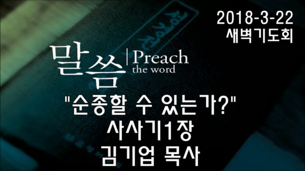 2018-3-22, "순종할 수 있는가?", 사사기1장, 새벽기도회, 하모나장로교회, 김기업 목사