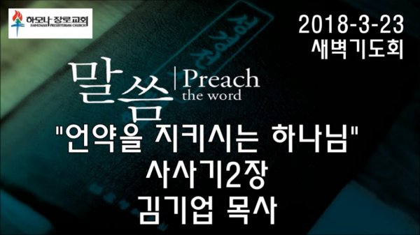2018-3-23, "언약을 지키시는 하나님", 사사기2장, 새벽기도회, 하모나장로교회, 김기업 목사