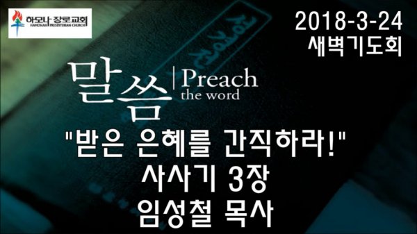 2018-3-24, "받은 은혜를 간직하라!", 사사기3장, 새벽기도회, 하모나장로교회, 임성철 목사