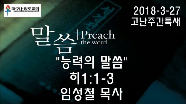 2018-3-27, "능력의 말씀", 히1:1-3, 고난주간특별새벽기도회, 하모나장로교회, 임성철 목사