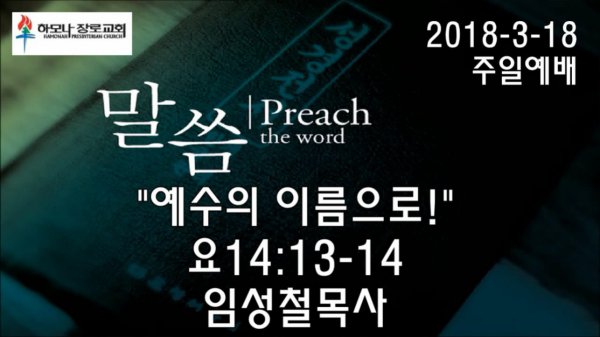 2018-3-18, "예수의 이름으로!", 요14:13-14, 주일예배, 하모나장로교회, 임성철 목사