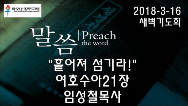 2018-3-16, "흩어져 섬기라!", 여호수아21장, 새벽기도회, 하모나장로교회, 임성철 목사