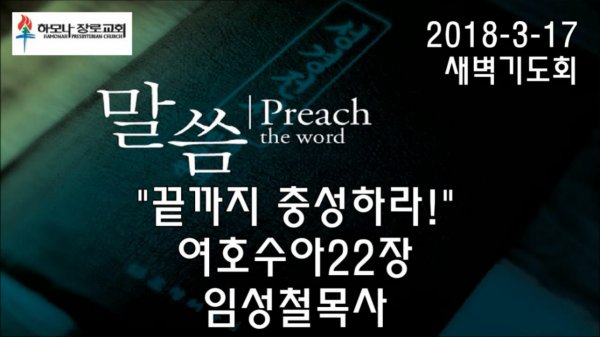 2018-3-17, "끝까지 충성하라!", 여호수아22장, 새벽기도회, 하모나장로교회, 임성철 목사