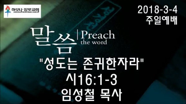2018-3-4, "성도는 존귀한자라", 시16:1-3, 주일예배, 하모나장로교회, 임성철 목사