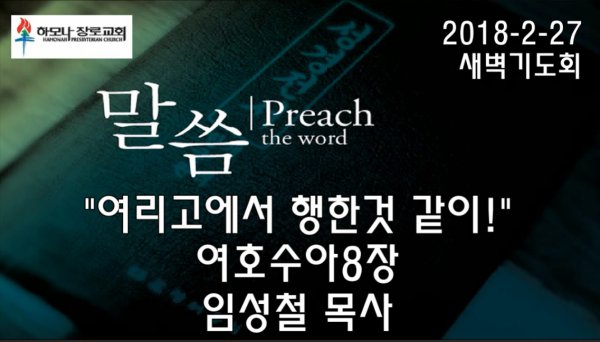 2018-2-27, "여리고에서 행한것 같이!", 여호수아8장, 새벽기도회, 하모나장로교회, 임성철 목사