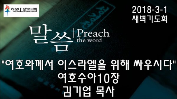 2018-3-1, "여호와께서 이스라엘을 위해 싸우시다", 여호수아10장, 새벽기도회, 하모나장로교회, 김기업 목사