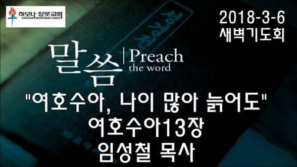 2018-3-6, "여호수아, 나이 많아 늙어도", 여호수아13장, 새벽기도회, 하모나장로교회, 임성철 목사